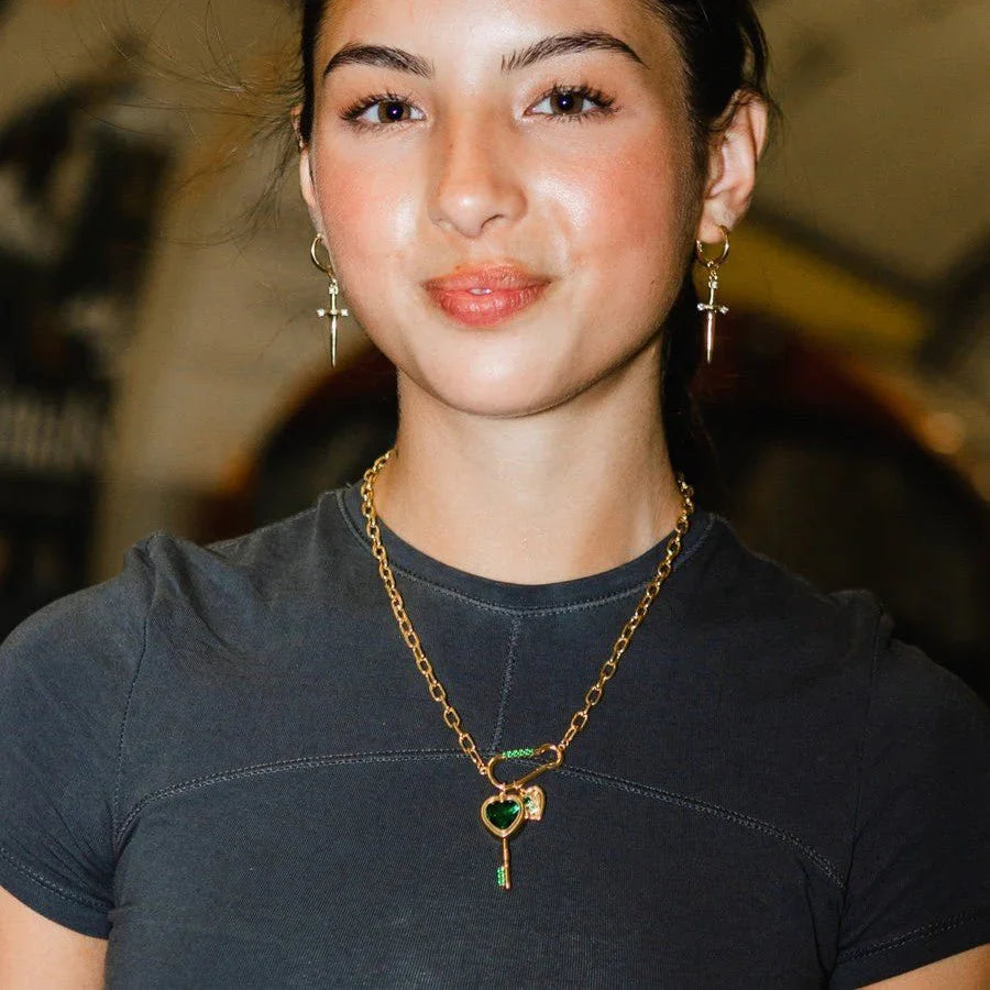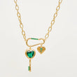 Fashion Emerald Love Key Inlaid Zircon Pendant Necklace